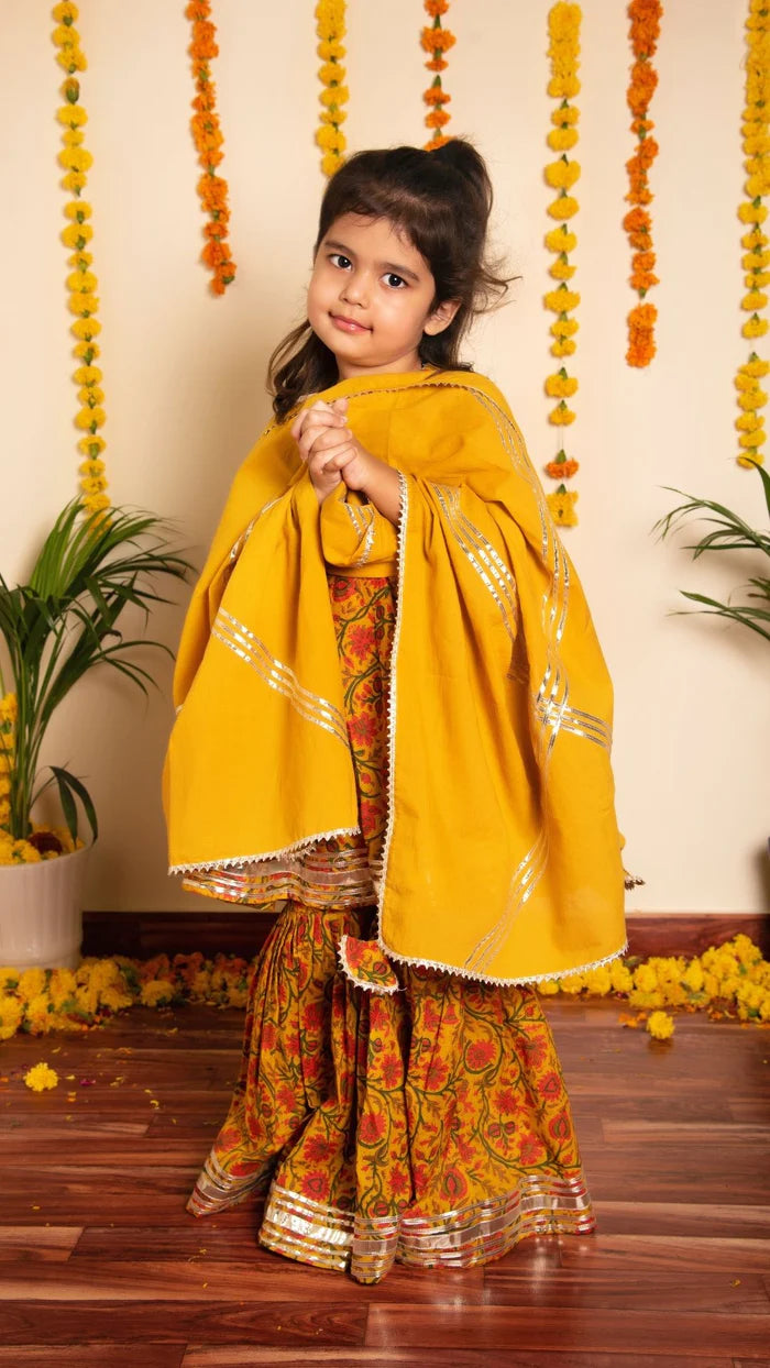 Mustard sharara set for girls