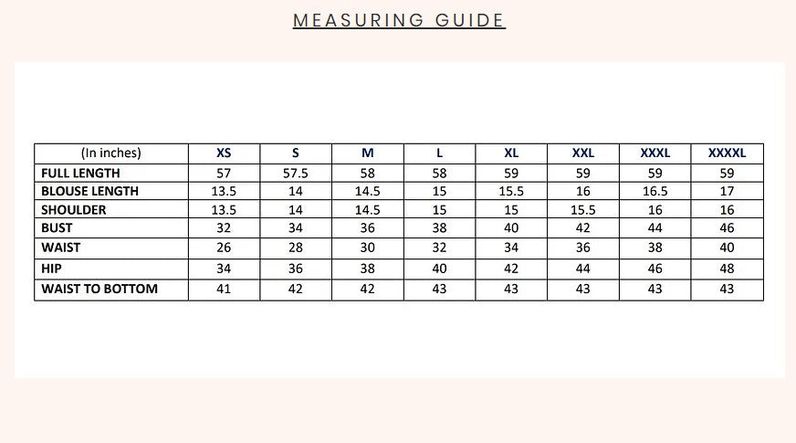 Custom sizing and outfit customizations, including colours and blouse changes, are available for most of our outfits.