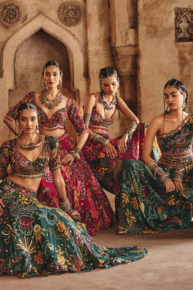 Custom sizing and outfit customizations, including colours and blouse changes, are available for most of our outfits.
