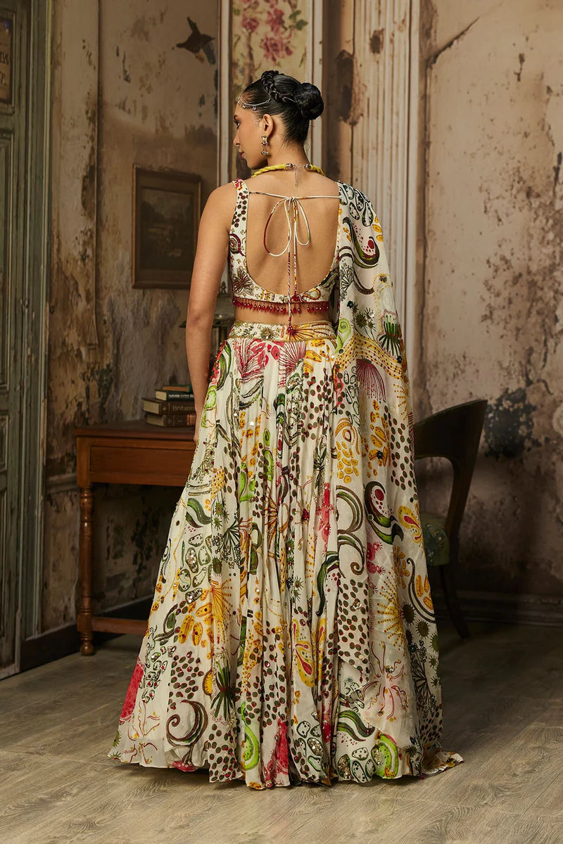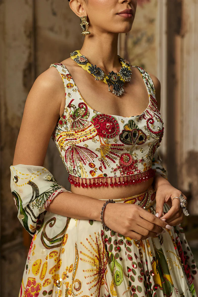 Ivory Print And Highlighted Lehenga Set