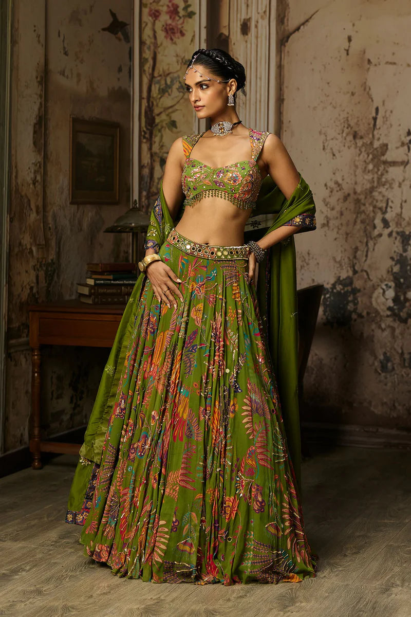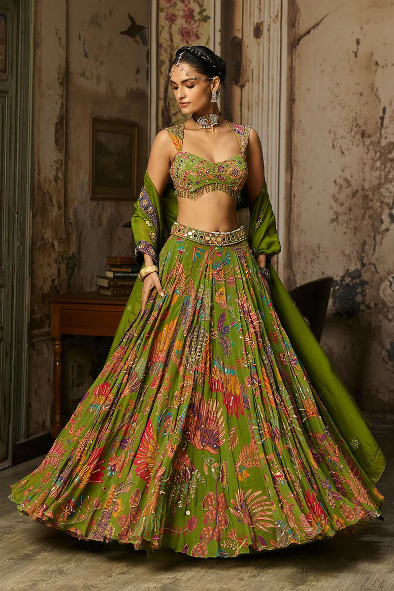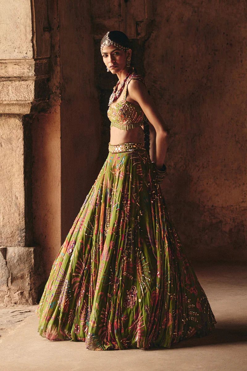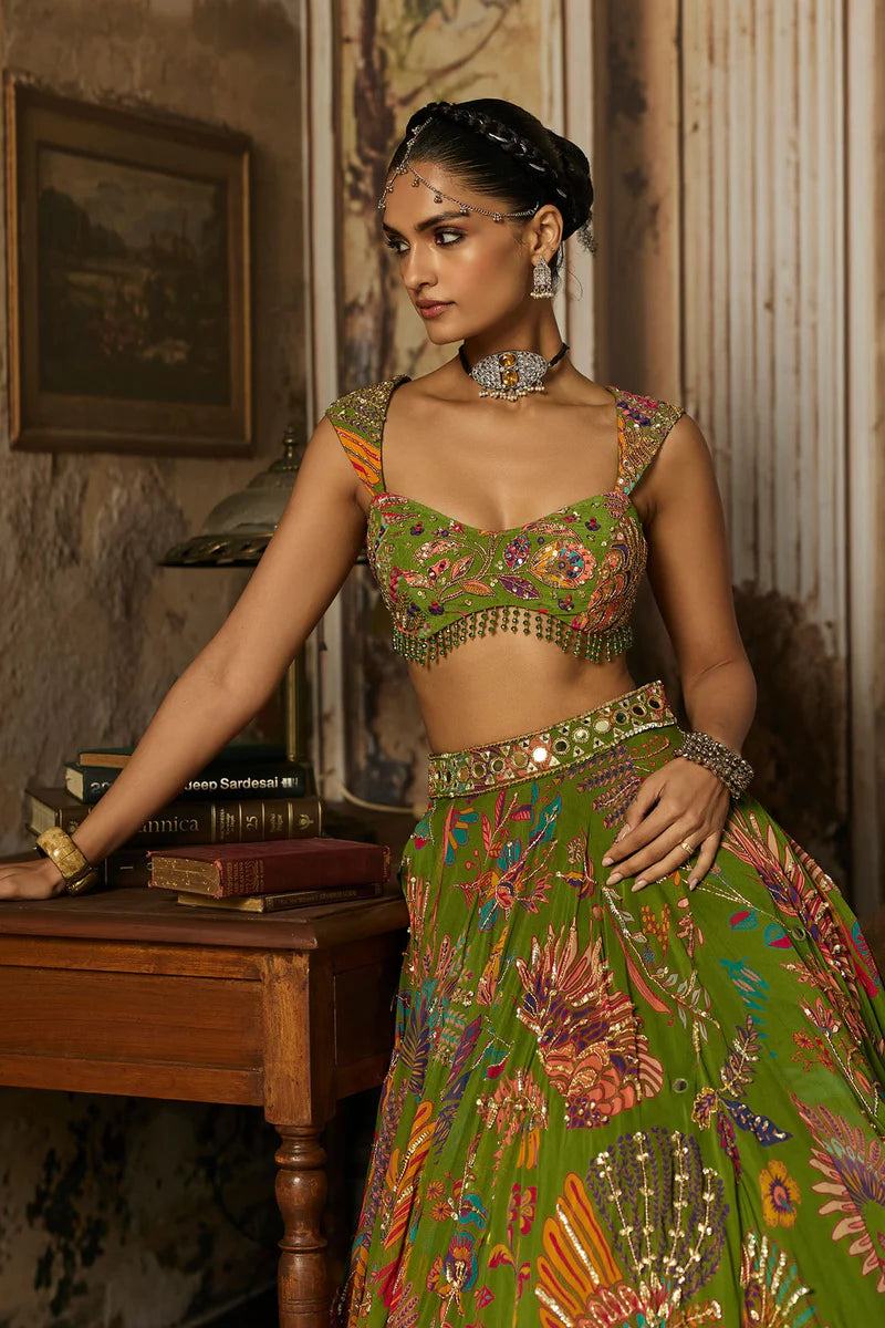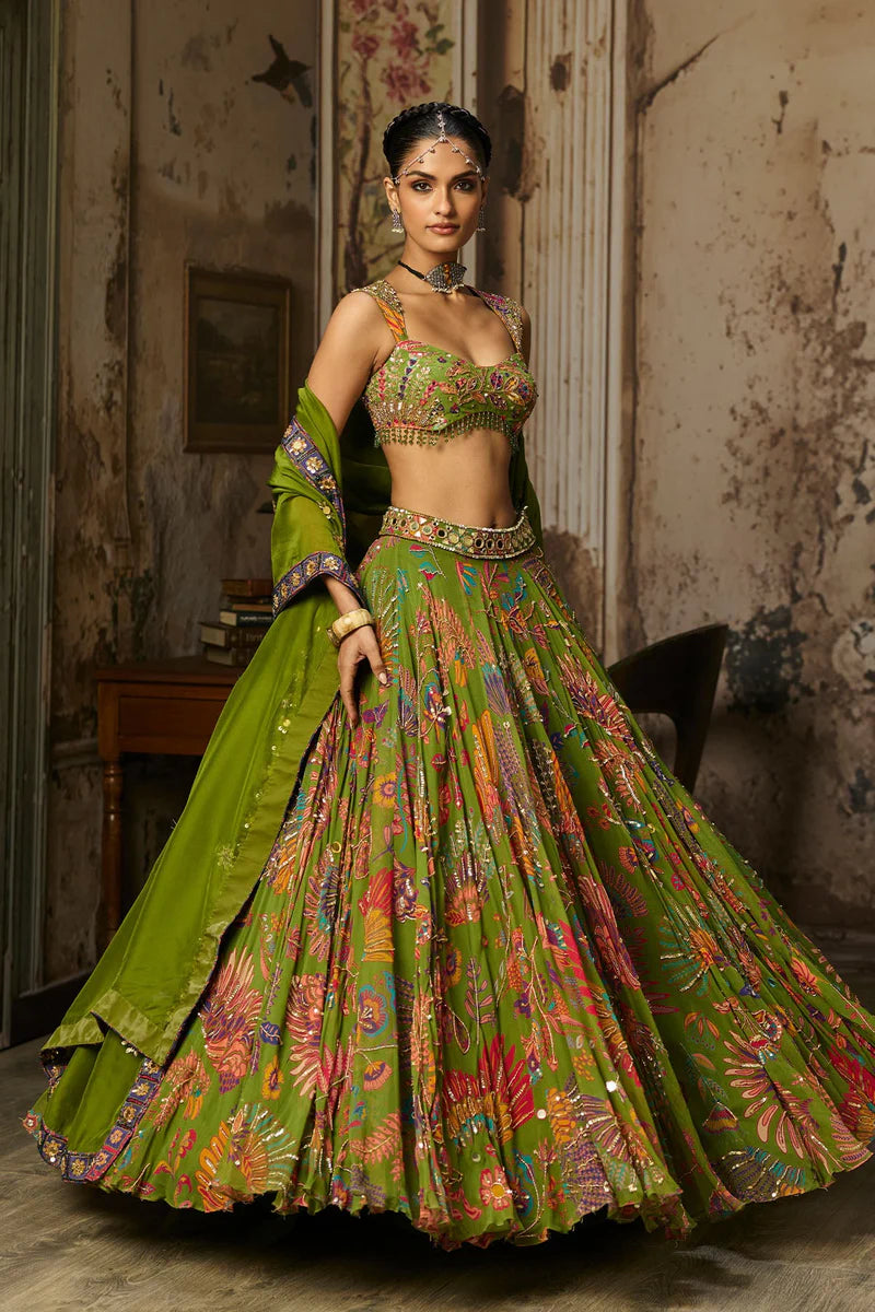 Pear Green Printed And Highlighted Lehenga Set