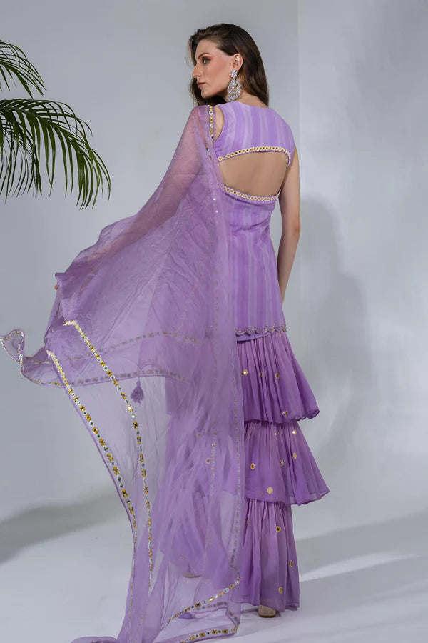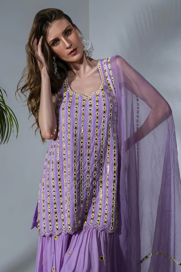 Lilac Embroidered Kurta And Sharara Set