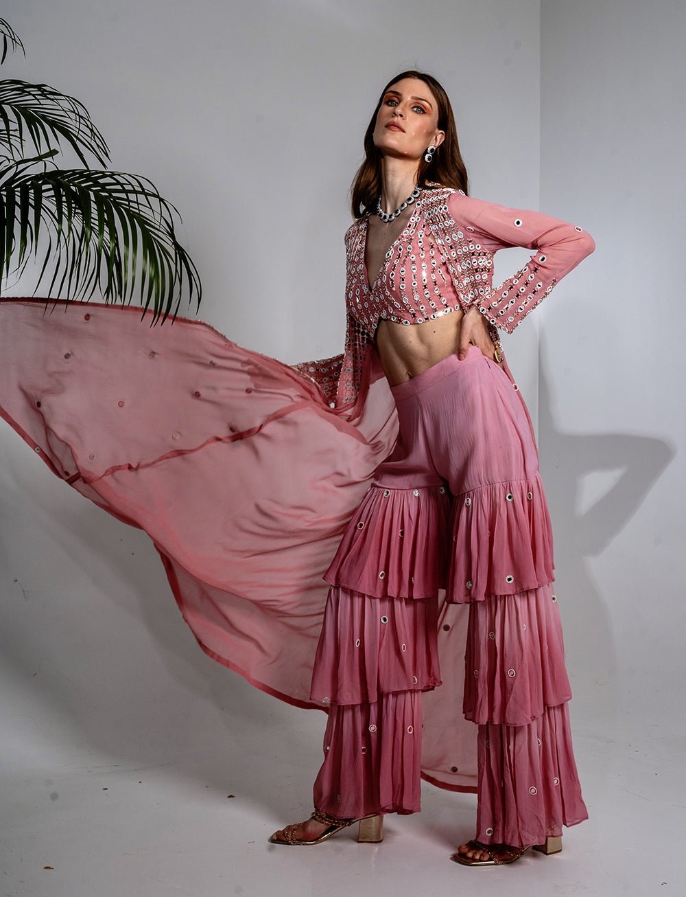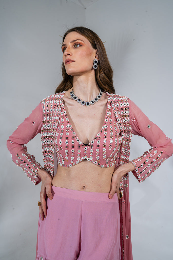 Pink Jacket Georgette Garara Set