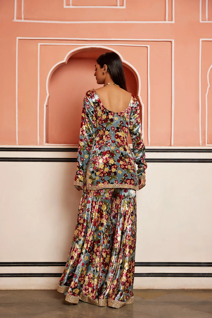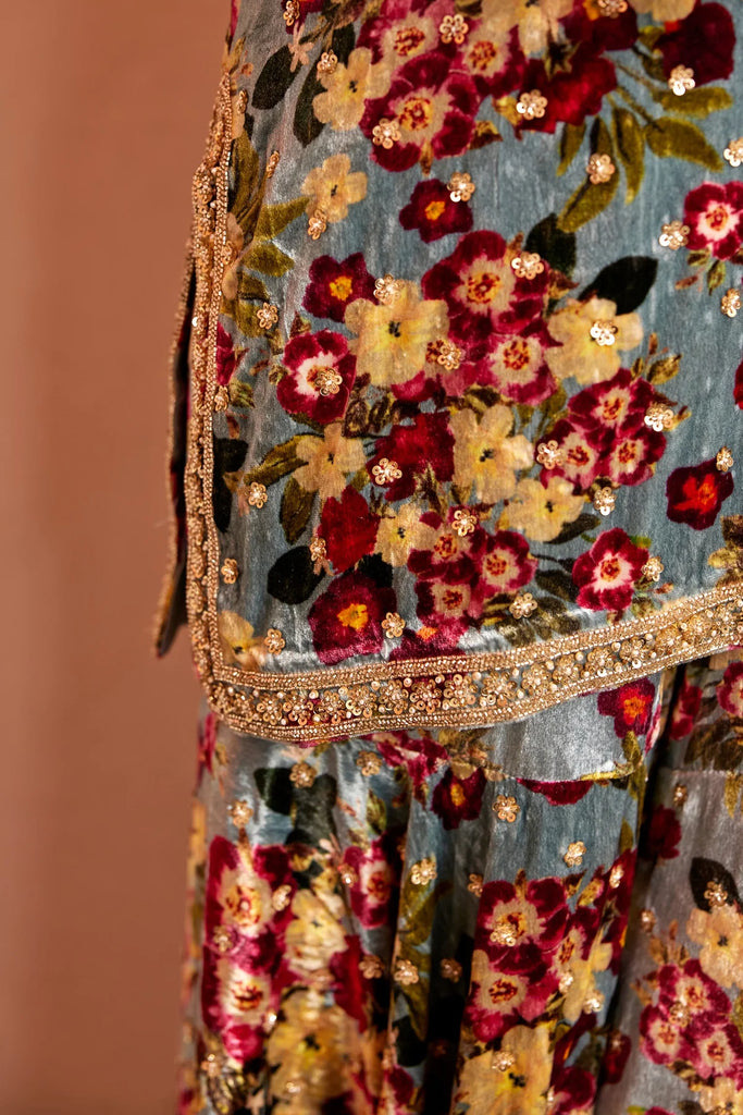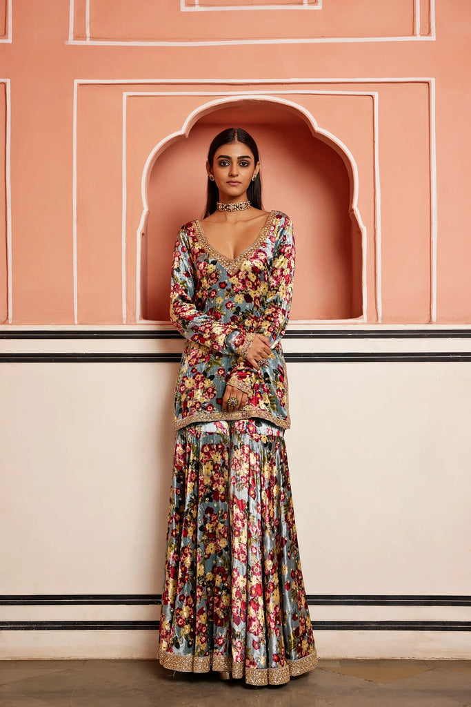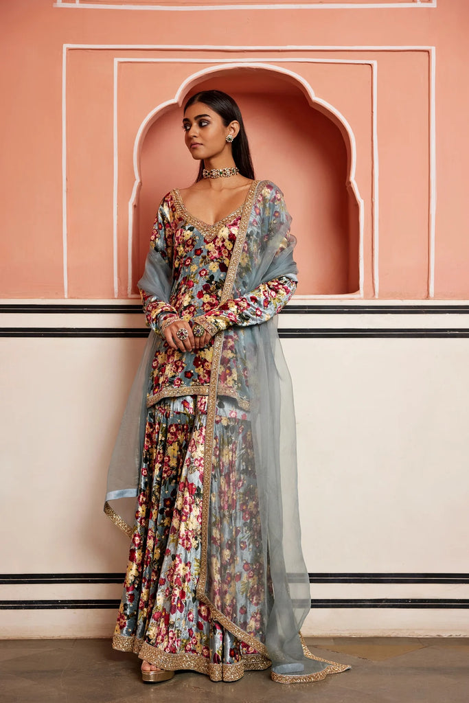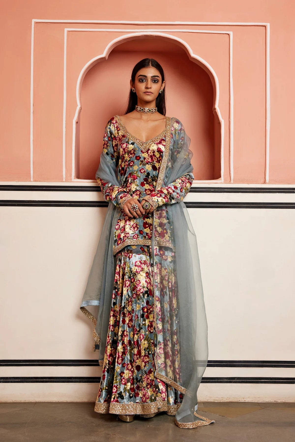 Dupatta: Organza, Kurta and Gharara: Velvet