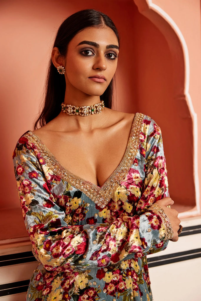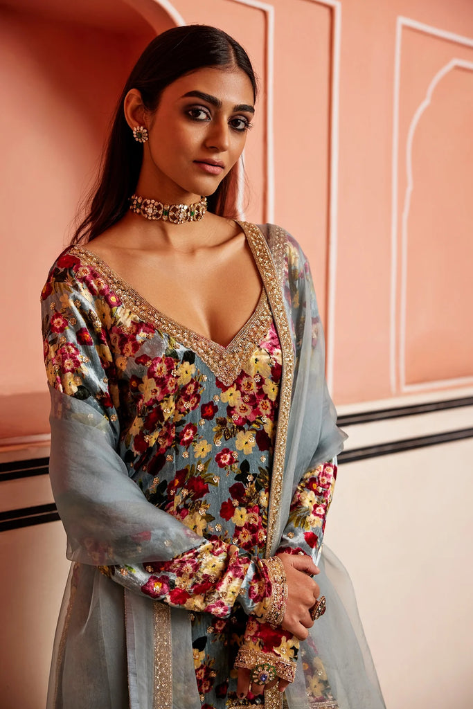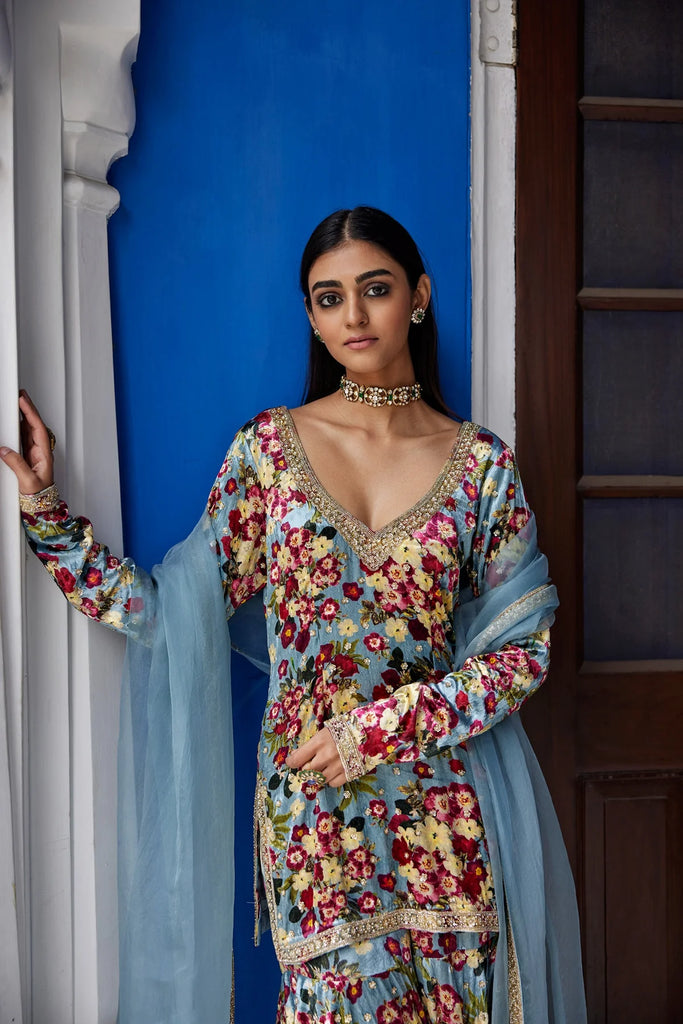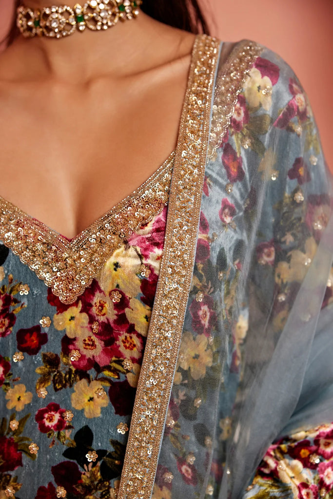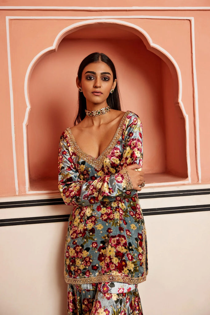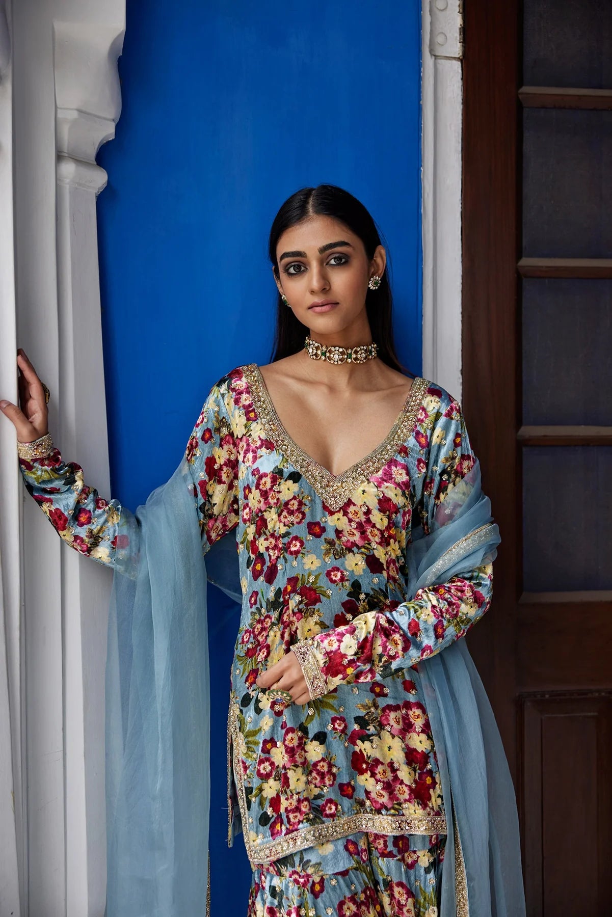Dupatta: Organza, Kurta and Gharara: Velvet
