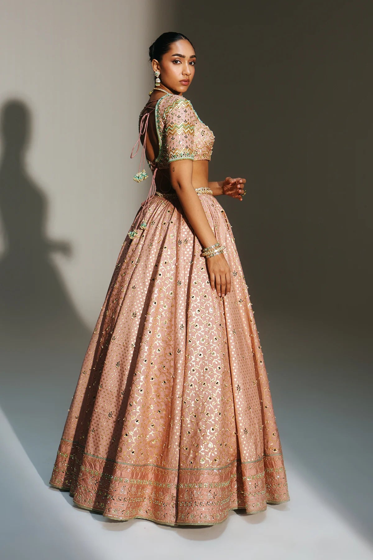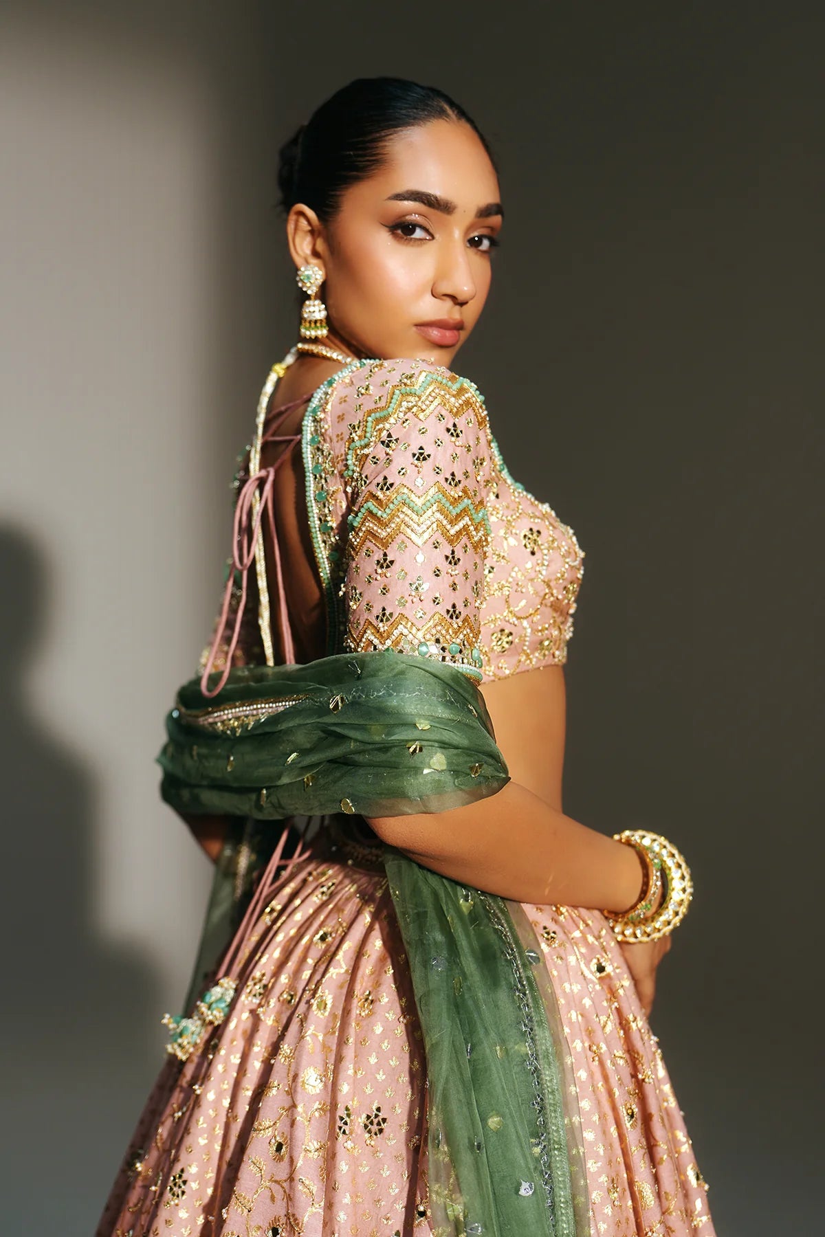 FARAH - HHand Embroidered Blush Pink Lehenga