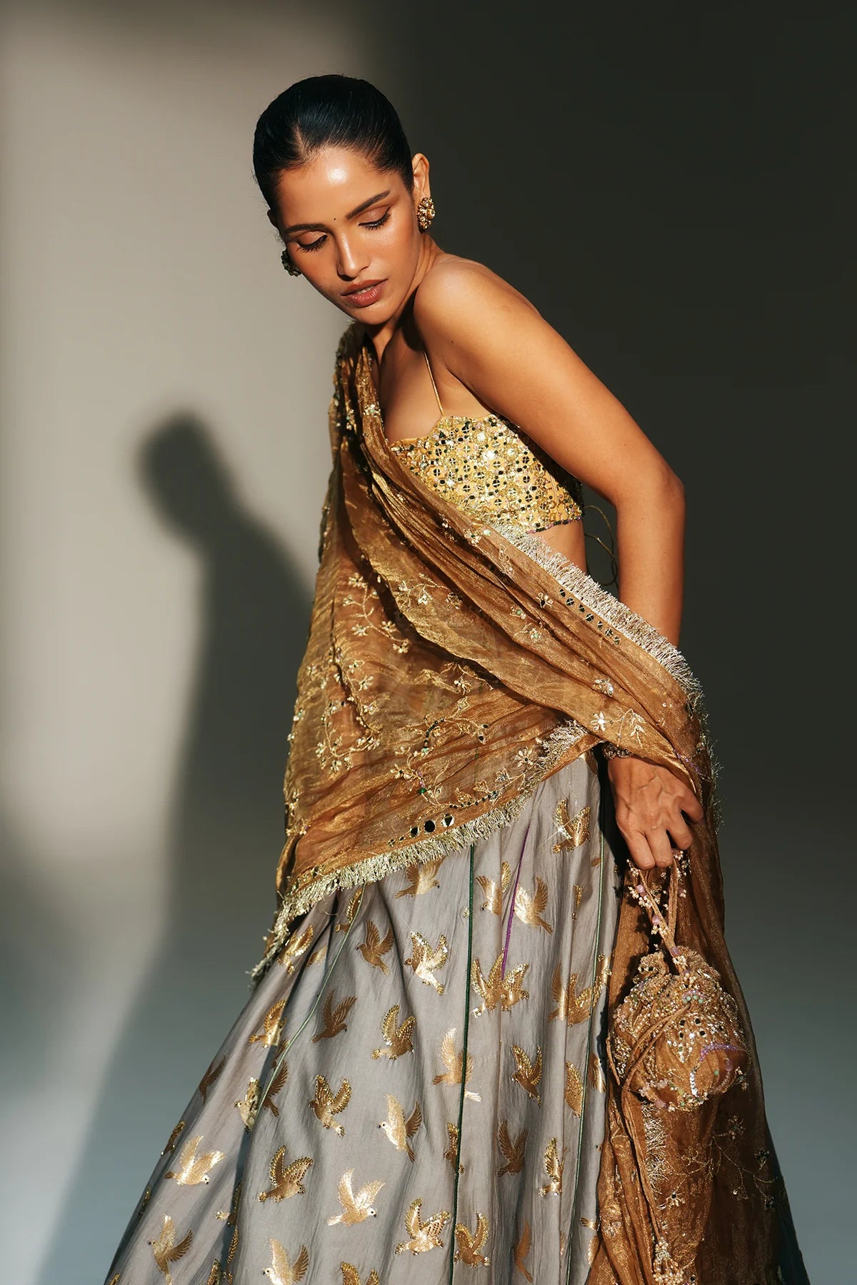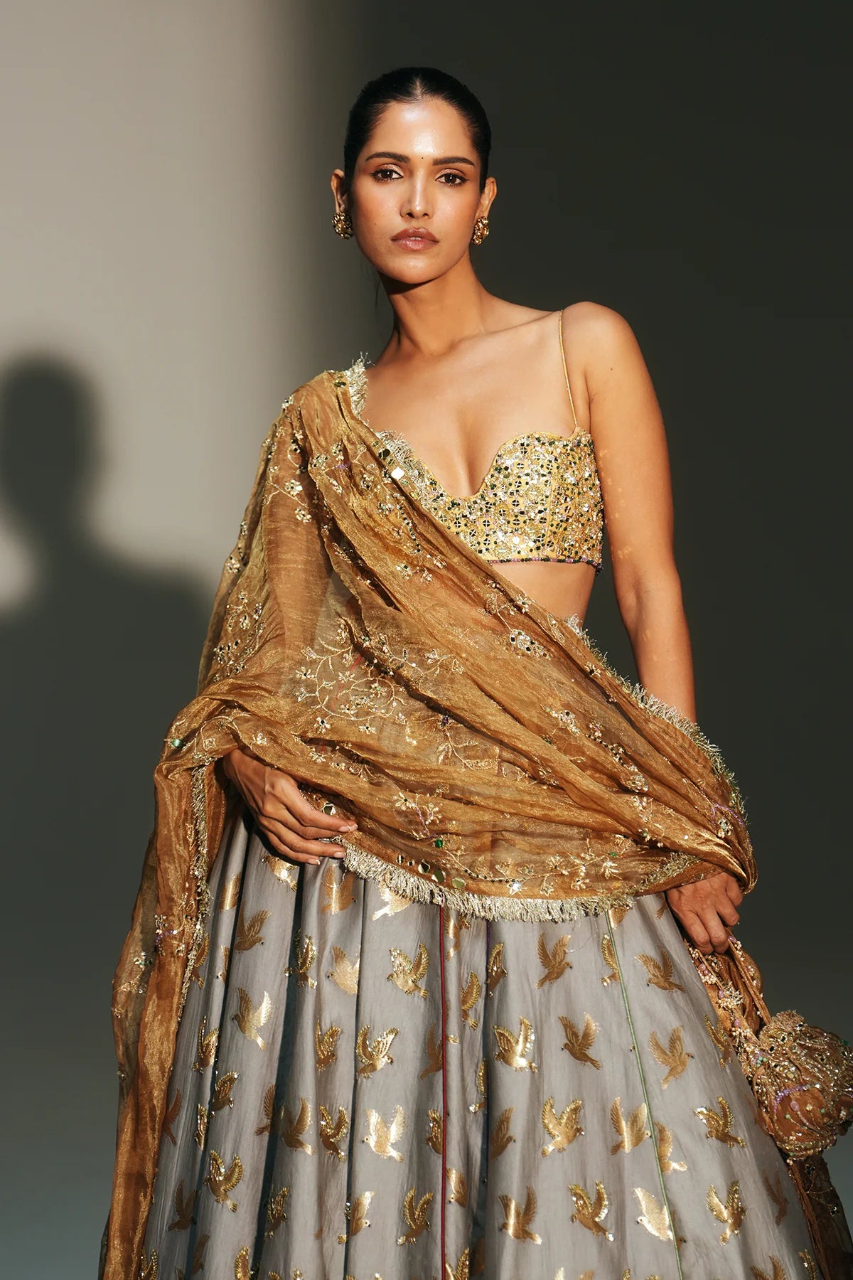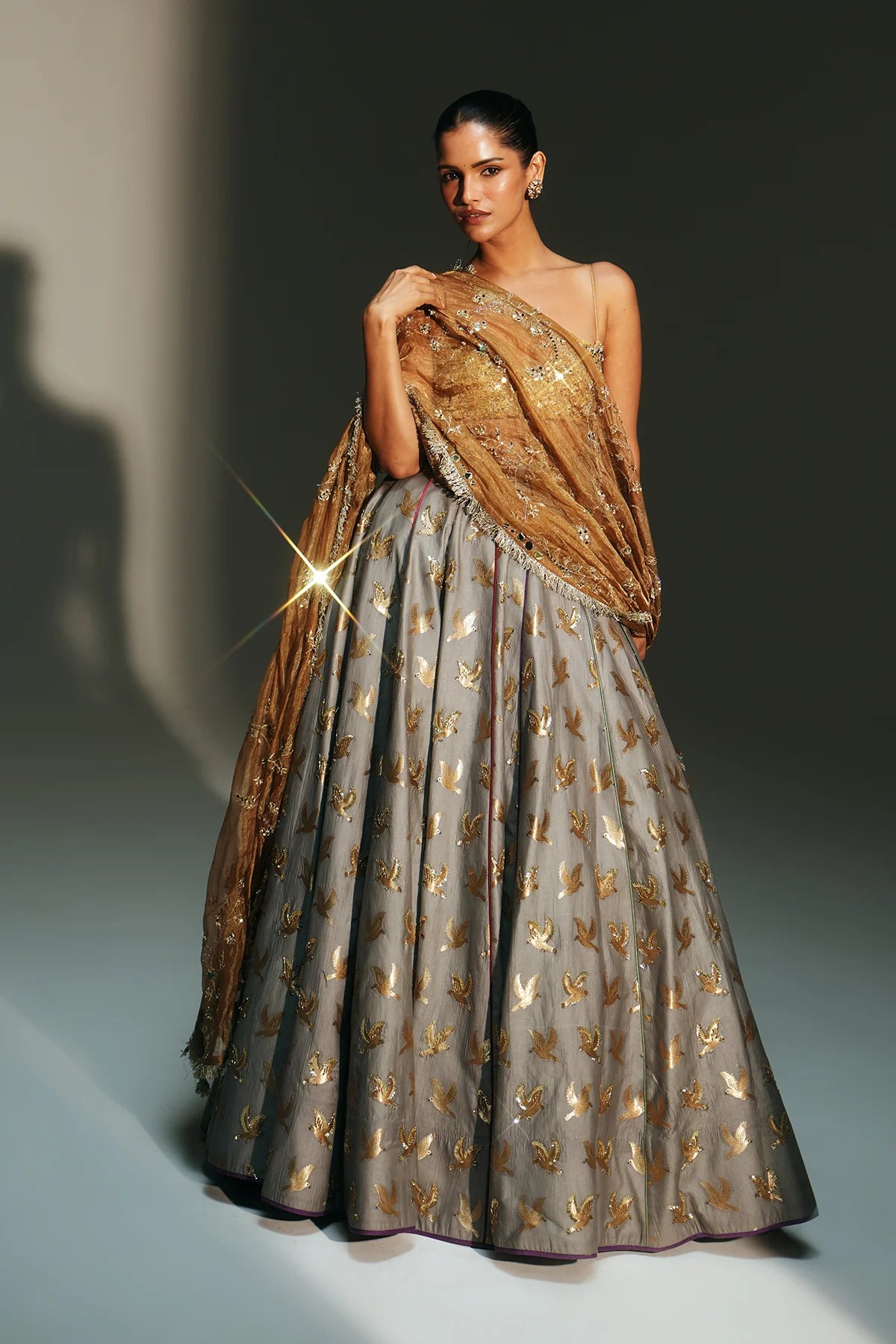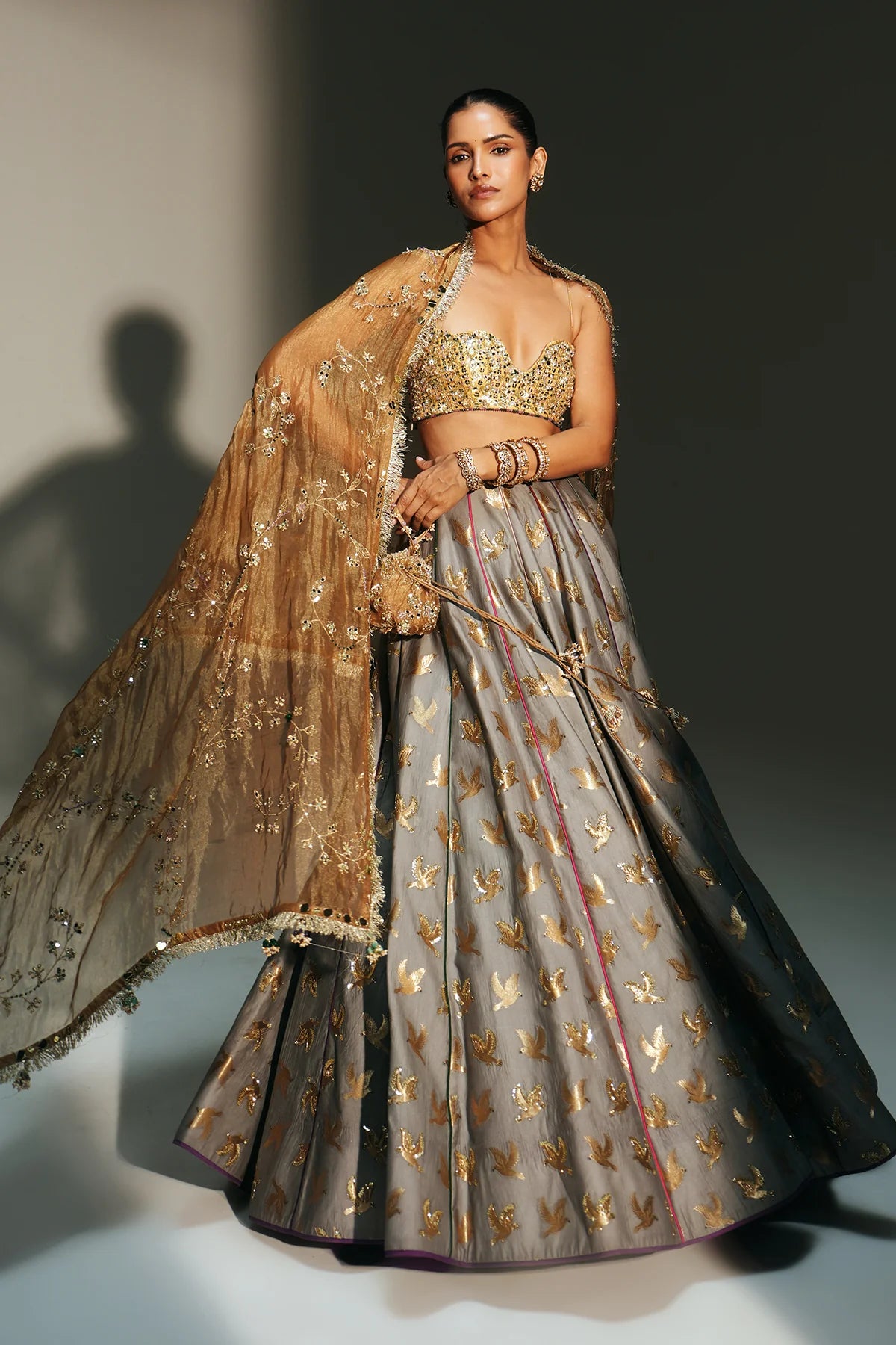 • Color: Lehenga-Platinumblouse & Dupatta- Golden