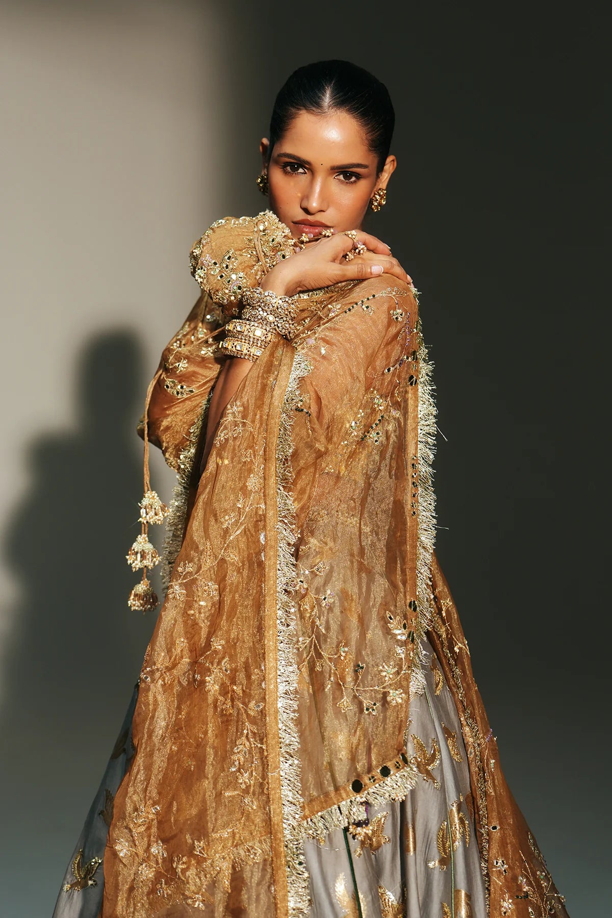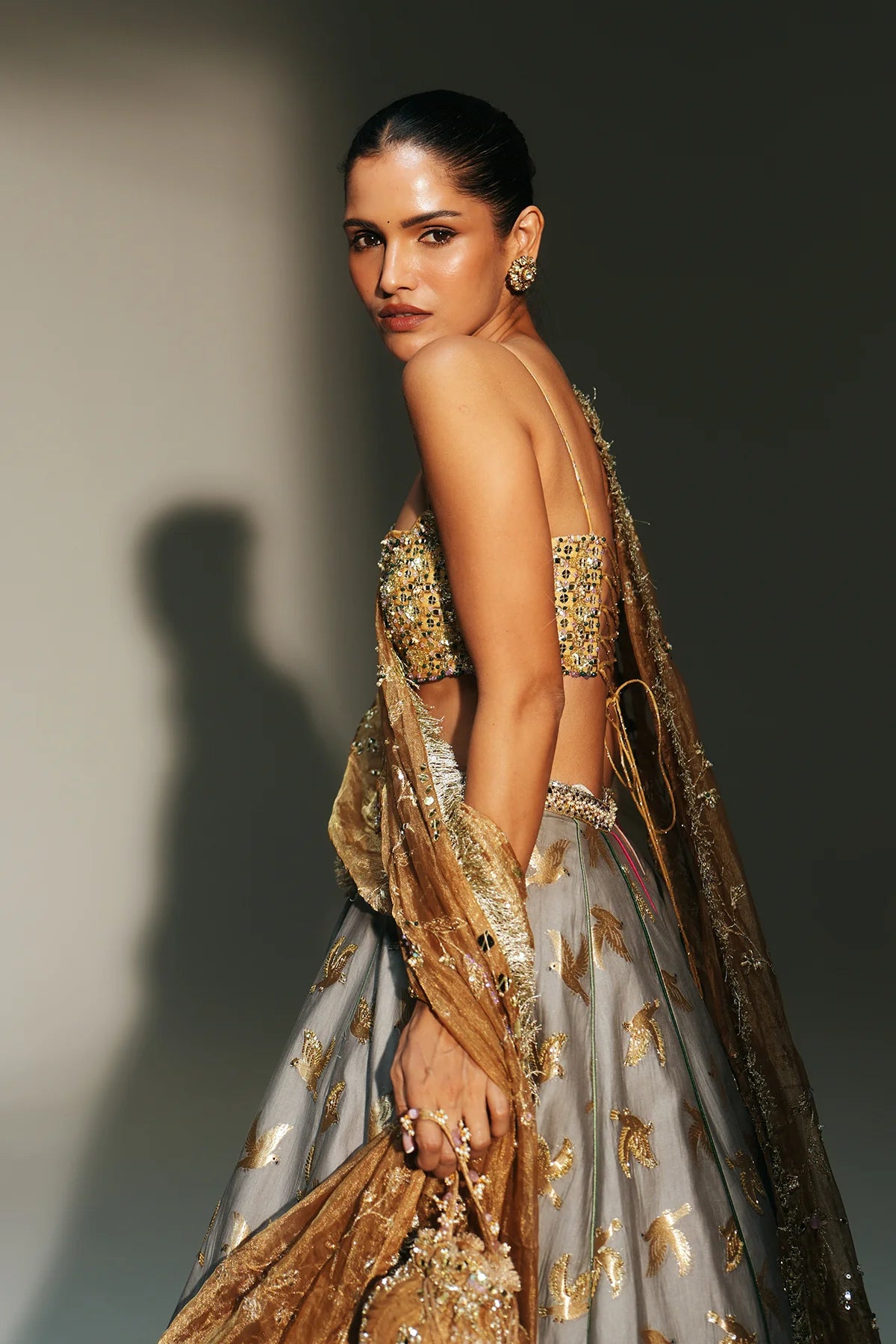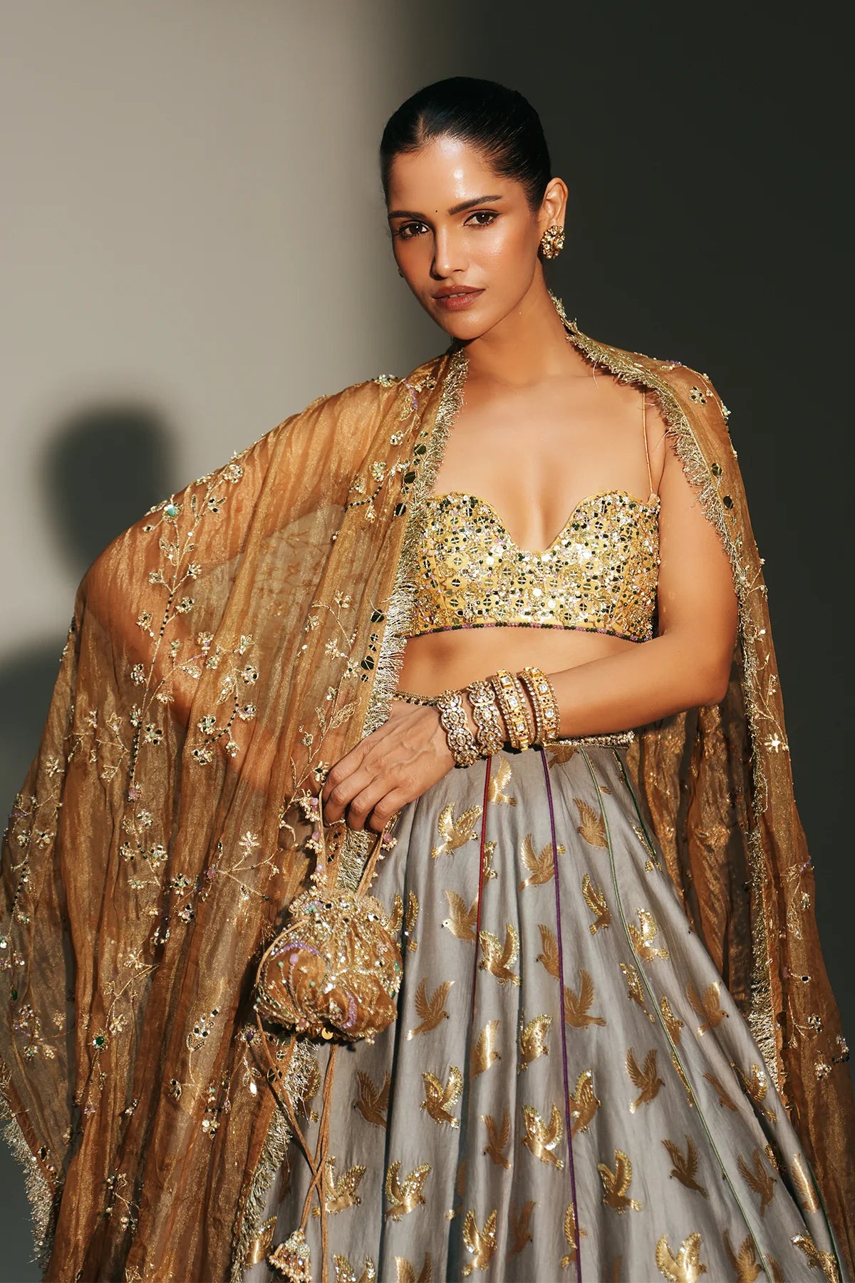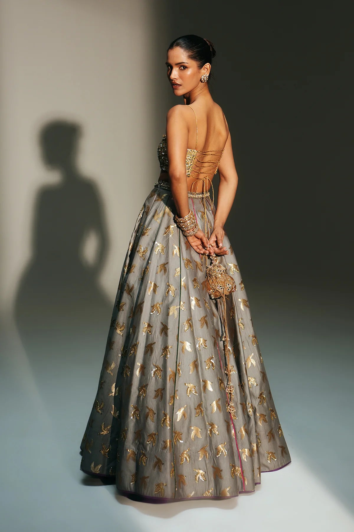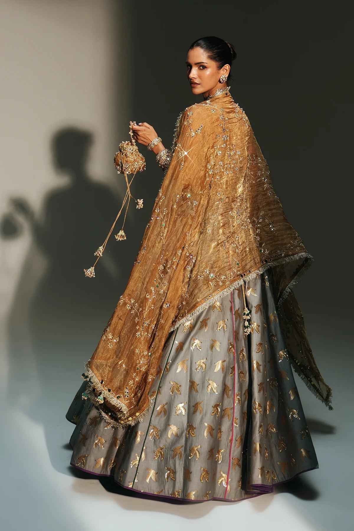 • Color: Lehenga-Platinumblouse & Dupatta- Golden