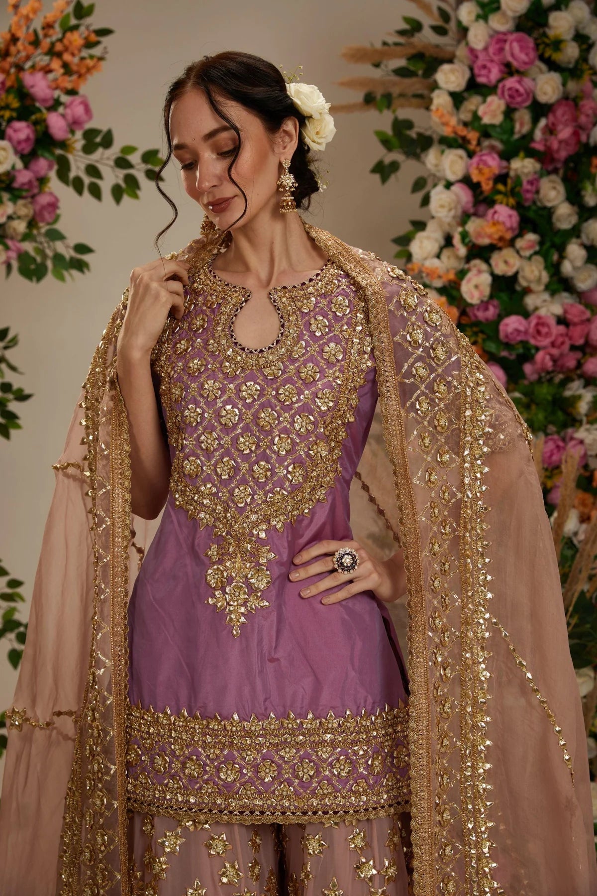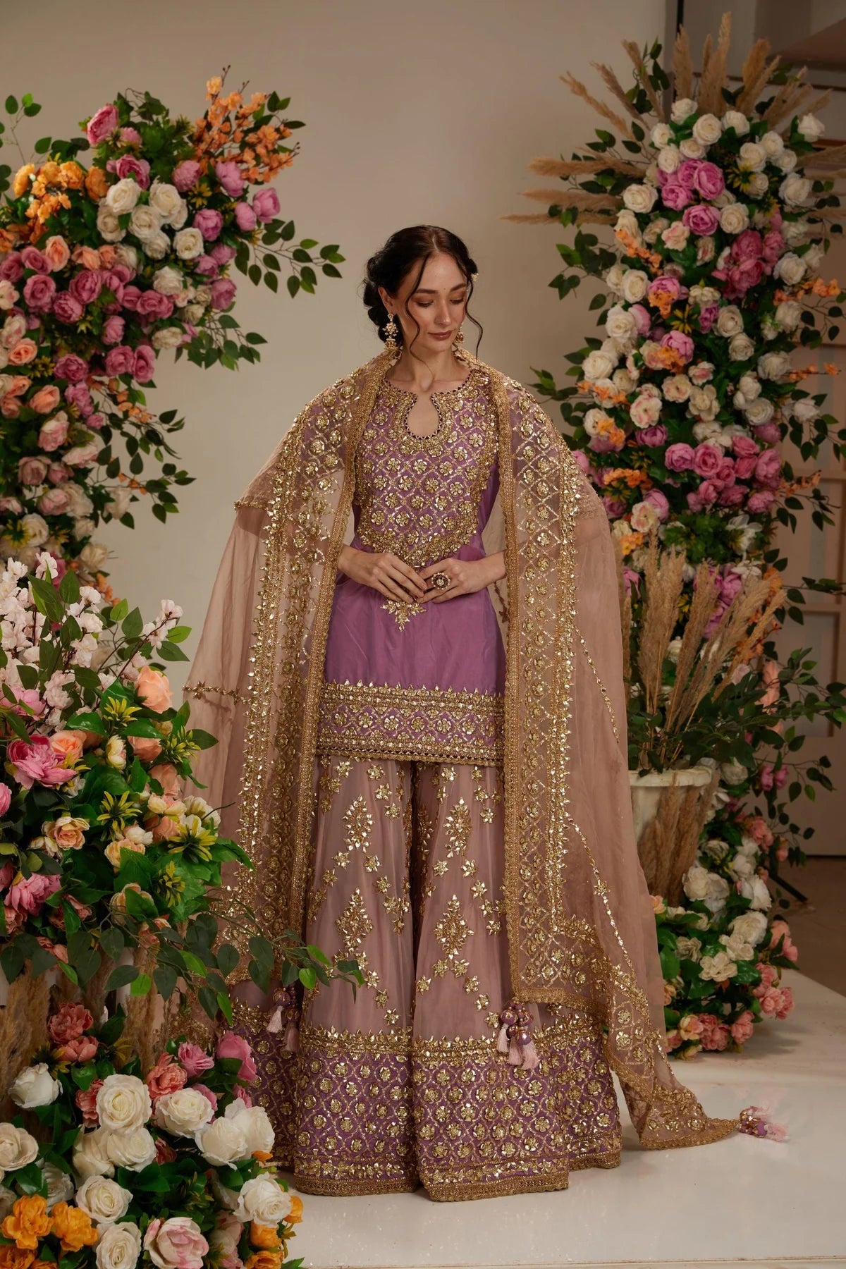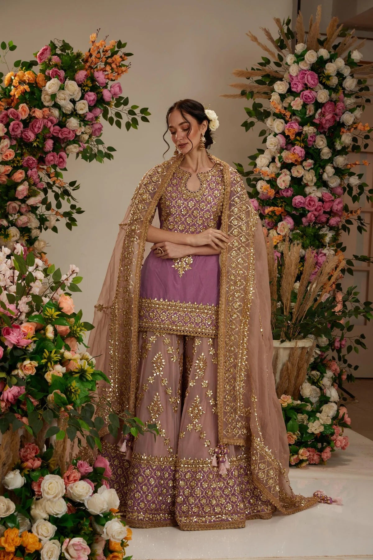 Lavender Kurta with Sharara and Dupatta