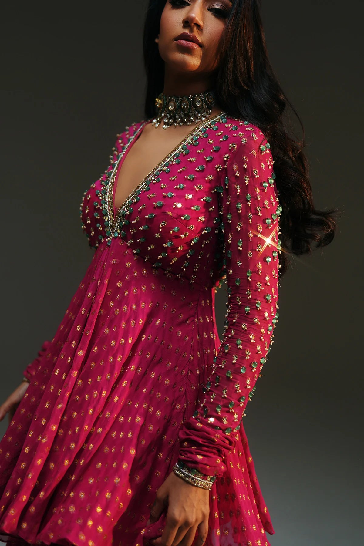 NIDHI - Hand Embroidered Rani Pink Short Kurta And Sharara