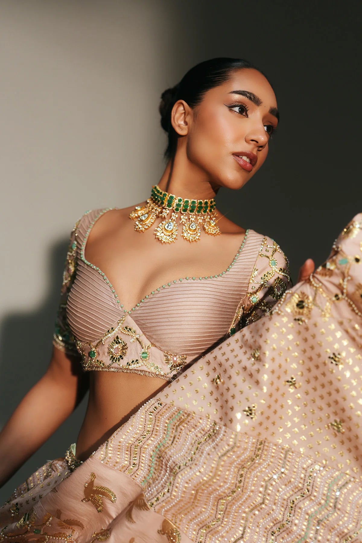 Custom sizing and outfit customizations, including colours and blouse changes, are available for most of our outfits.